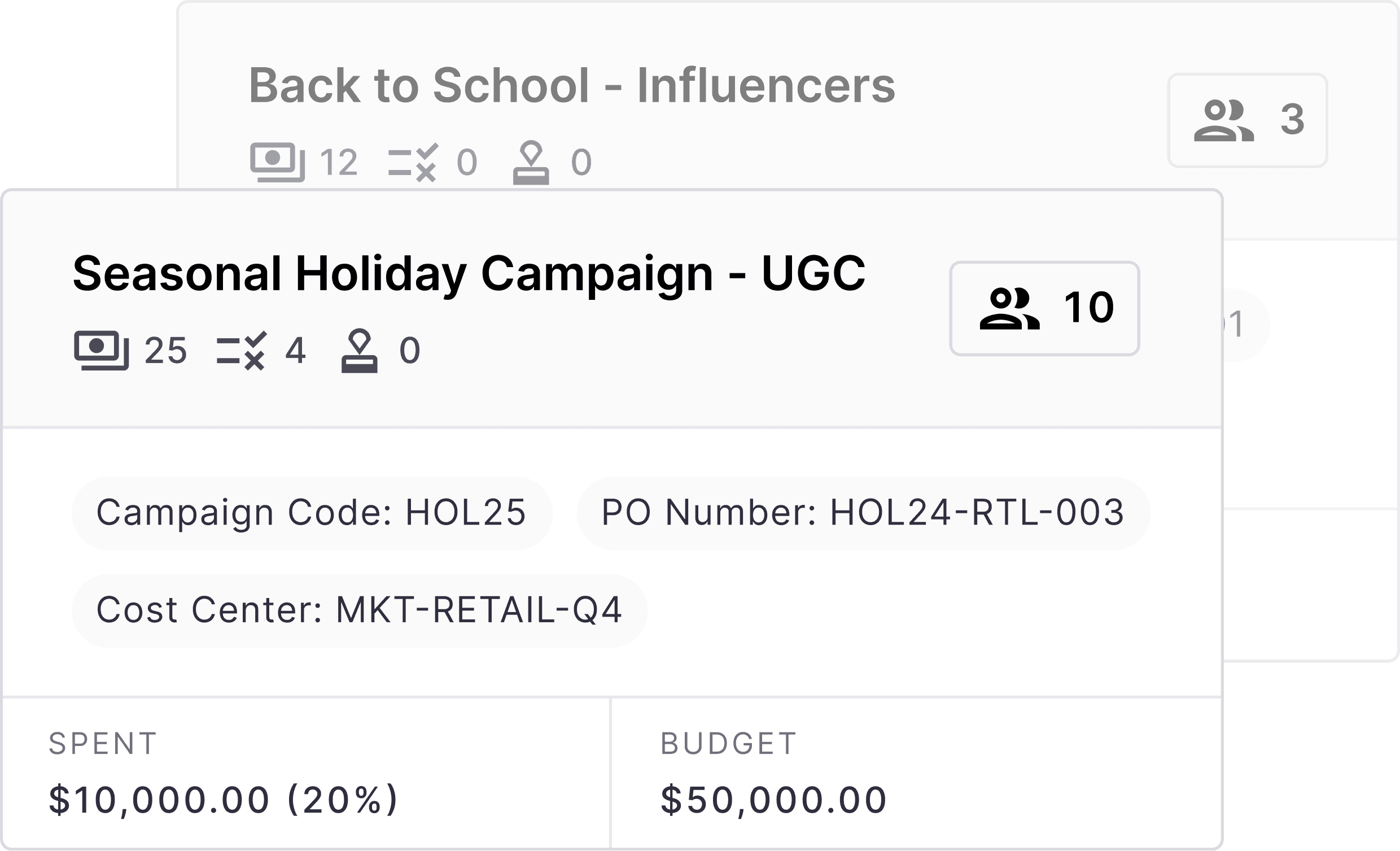 Balance speed with governance: enforce policies, automate approvals, and track vendor spend in real time across teams, campaigns, projects, and regions.