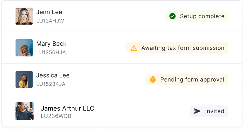 Self-serve vendor onboarding built for easy and compliant onboarding ofr your influencers, creators, affiliates and freelancers.