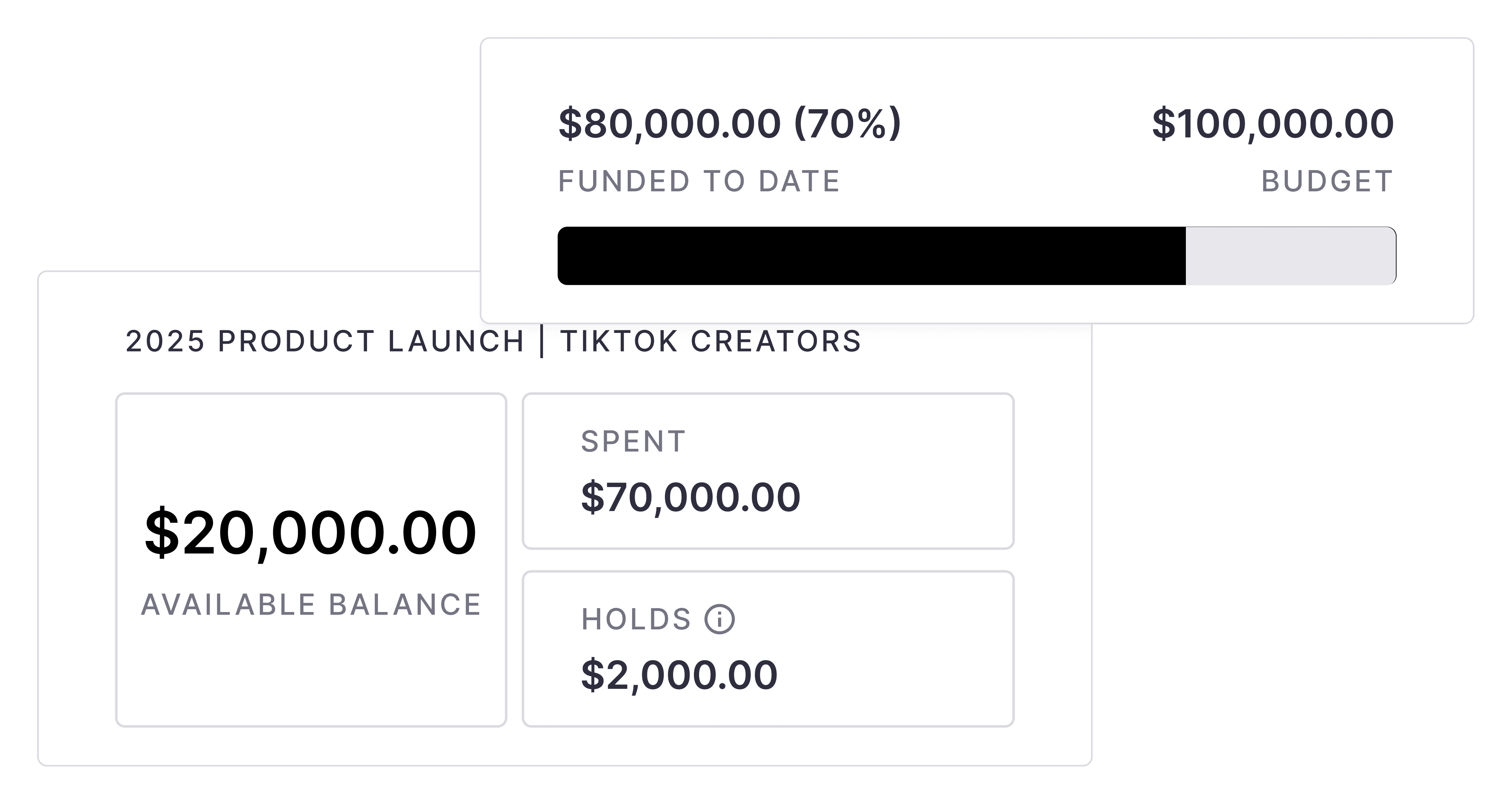 Track spend against specific campaign and project budgets in real-time.