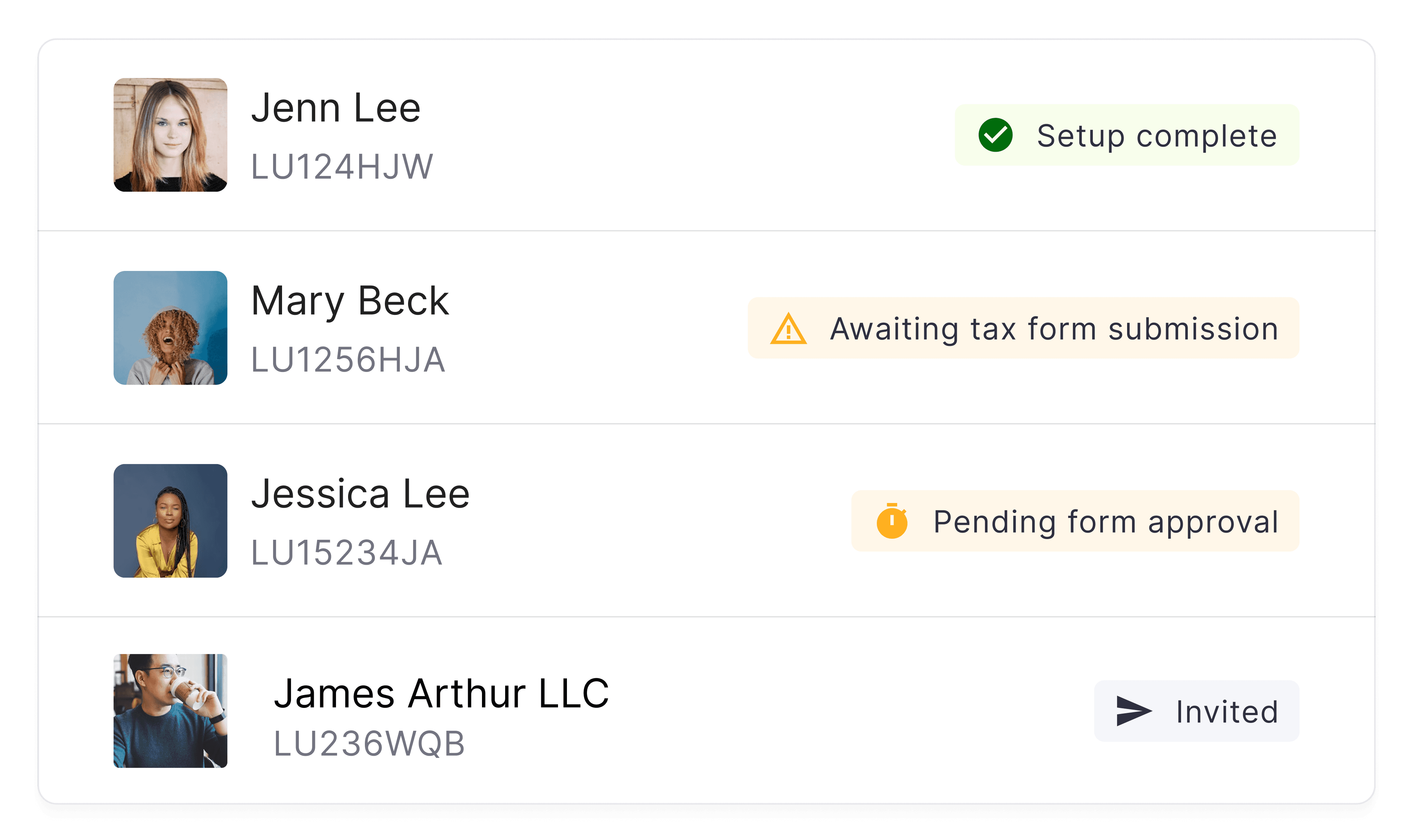 Work with any production vendor, crew member, or freelancer instantly without cumbersome vendor setups. Simply invite partners through Lumanu and we’ll collect all required documents including W-9s, W-8s, COIs, talent releases, and more.